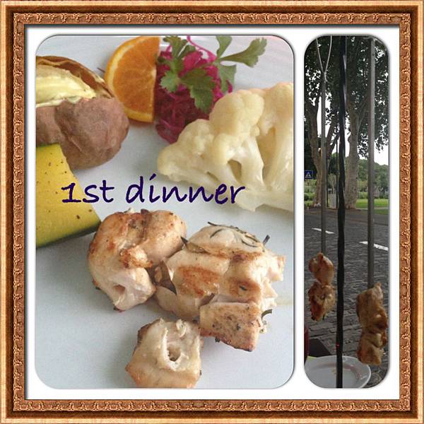檸檬和CA的主菜都選了烤雞,這裡的烤雞是架子上掛着長長的一串串,很有趣