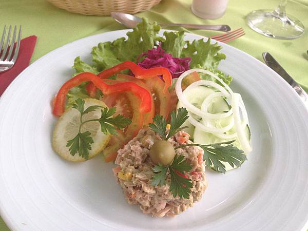 我的吞拿魚沙律上桌,我喜歡西餐的擺盤,
