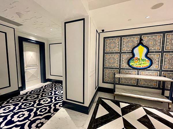 從出電梯看到的葫蘆圖案與歐式花磚風格的融合