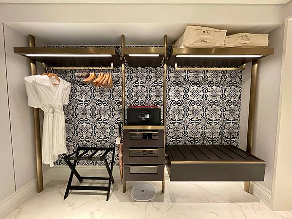 從偌大的浴室洗澡出來,迎面的就是簡約優雅的衣帽間