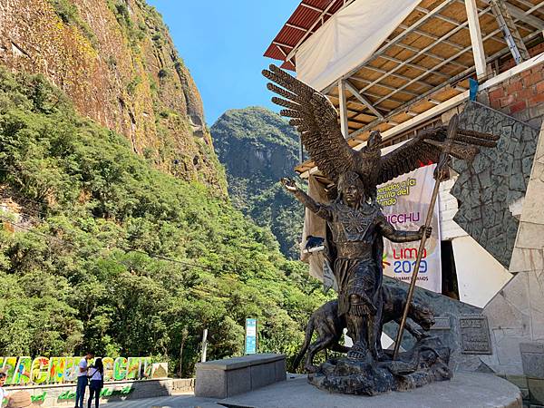 這邊有個小廣場,廣場中央佇立着Pachacutec的雕像,雕像都穿着不同的傳統服飾,手拿着刃器。